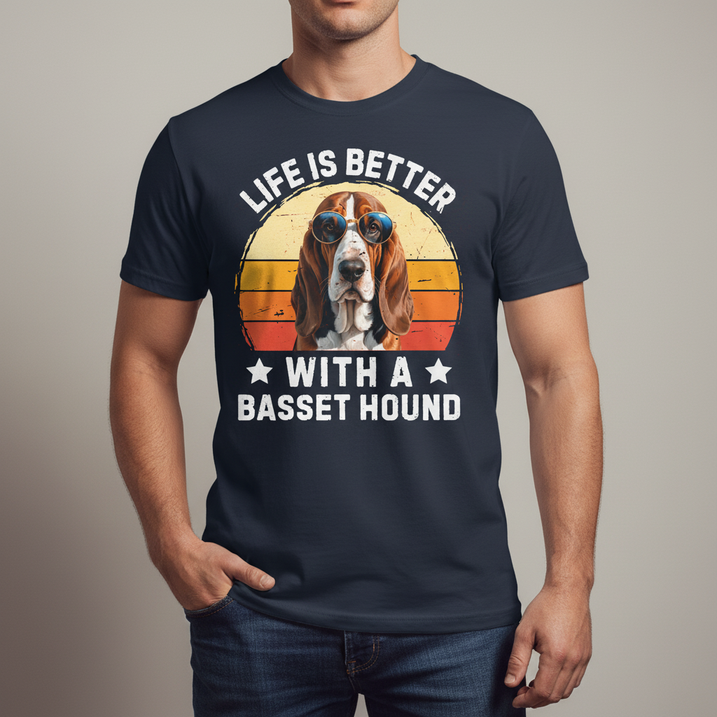 This lightweight crew-neck tee brings a relaxed, lived-in vibe to every day with a playful, vintage-style Basset Hound design. The soft Airlume combed and ring-spun cotton feels breathable against the skin and layers easily under jackets or sweaters. The graphic — a retro sunburst behind a cool Basset wearing shades with the line “Life is Better with a Basset Hound” — reads like a small, honest celebration of slow walks, loyal companionship, and dog-downer pride. Wear it on morning errands, weekend dog-park runs, or low-key gatherings where conversation quickly turns to fur, treats, and training stories. The tear-away label, ribbed collar, and side seams keep the shirt comfortable and looking sharp through repeat wears and washes, while durable print techniques keep the artwork bright and detailed on the sleeves and neck area.